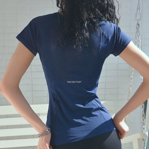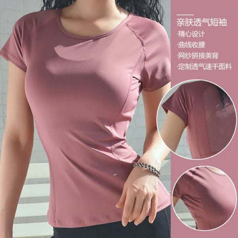 Ladies Sportswear Mesh Stitching Short-Sleeved Sports T-Shirt Women Yoga Tops Running Fitness Clothes Factory Ready Stock